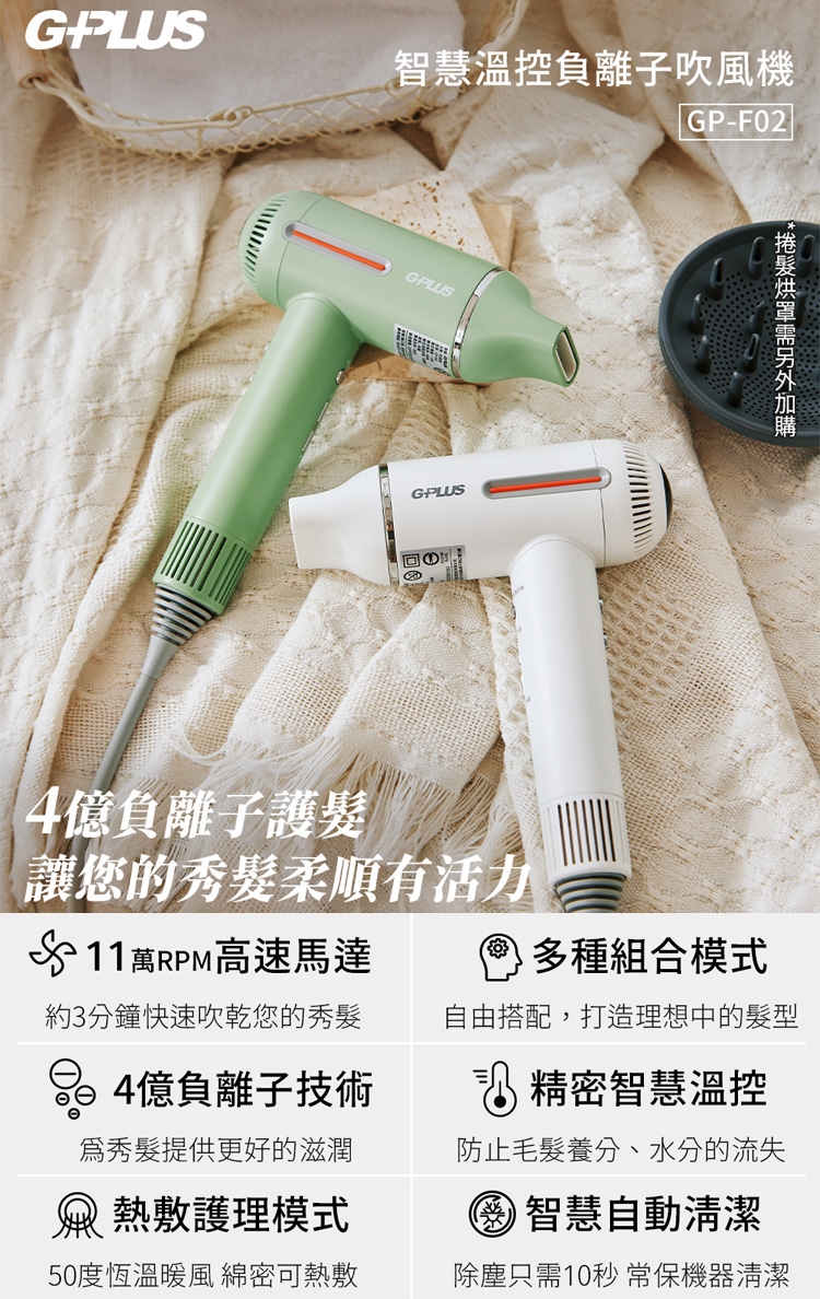 【G-PLUS 拓勤】GP-F02 智慧溫控負離子吹風機