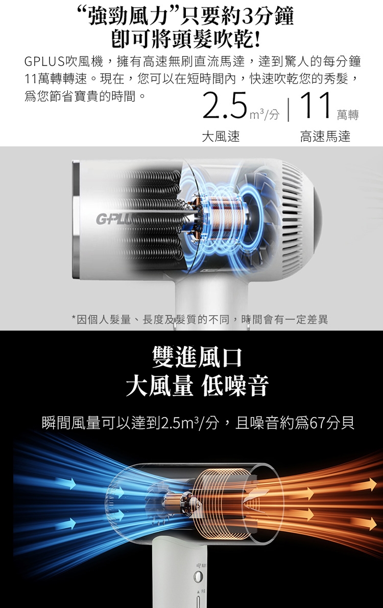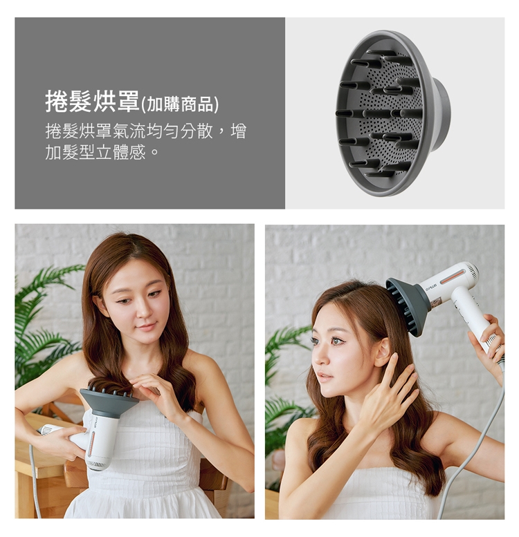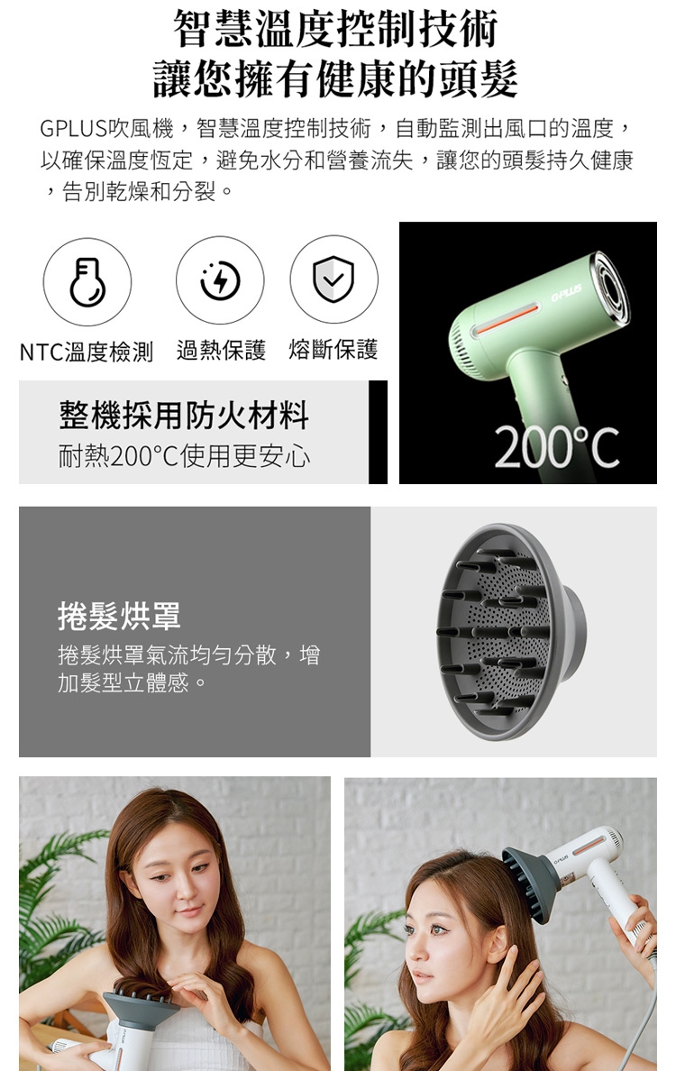 【G-PLUS 拓勤】GP-F02 智慧溫控負離子吹風機(捲髮烘罩組)