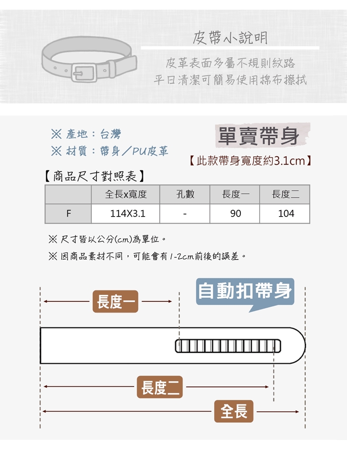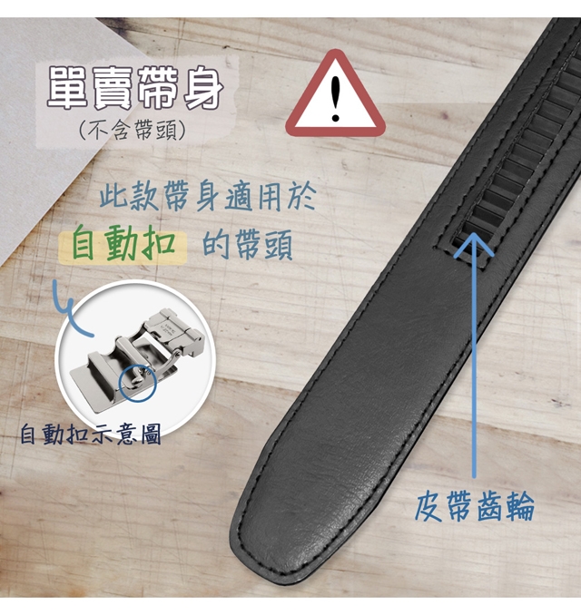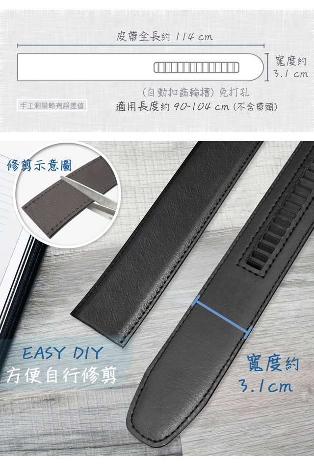 可搭配活動式帶頭,方便自行剪裁皮帶尺寸~