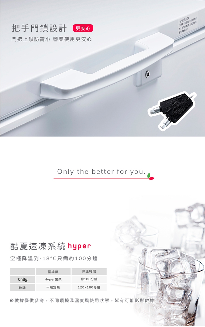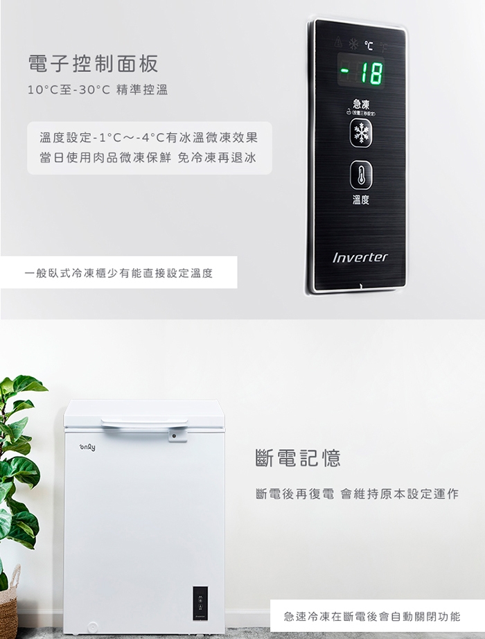 溫度調節:冷藏10~0°C;冷凍0~-30°C (預設-18°C)