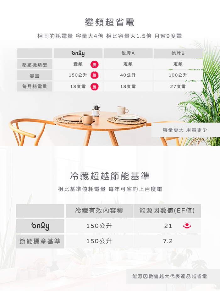 冷藏模式能源因數值(EF值):21.0 ℓ/kWh/月