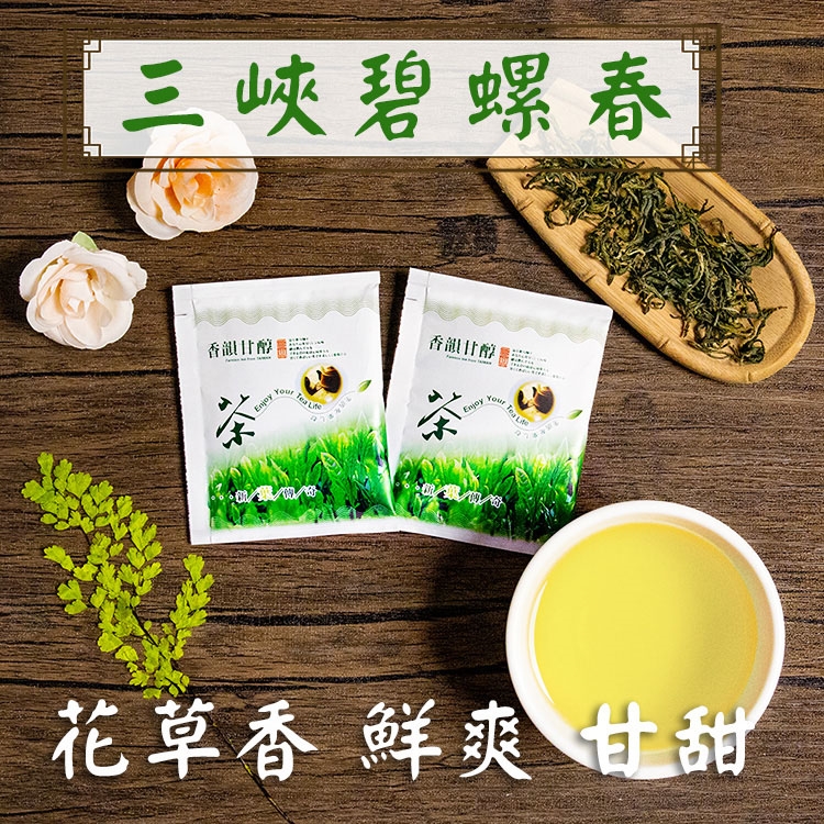 台灣碧螺春綠茶產於新北市三峽區,使用青心柑仔茶樹,屬於不發酵綠茶,依台灣地區氣候調整炒青及烘焙法,在滋味上和中國大陸地區的碧螺春茶有所不同。台灣種葉片較大較長,製作上以條型居多,茶芽細毛多,略帶白毫,喝起來口感較為滑順,既甜柔又鮮爽,是台灣特色茶中唯一的綠茶。三峽碧螺春水色純淨透亮、呈現淡綠茶湯,主要採春、冬嫩芽製作,含有飽滿具甘甜鮮味的「茶胺酸」與「茶多酚」,故喝起來滋味鮮甜、順口回甘。