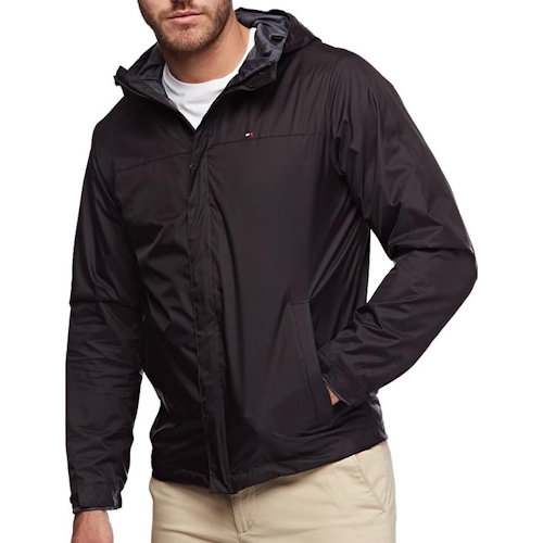【Tommy Hilfiger】2024男時尚防水透氣黑色連帽外套