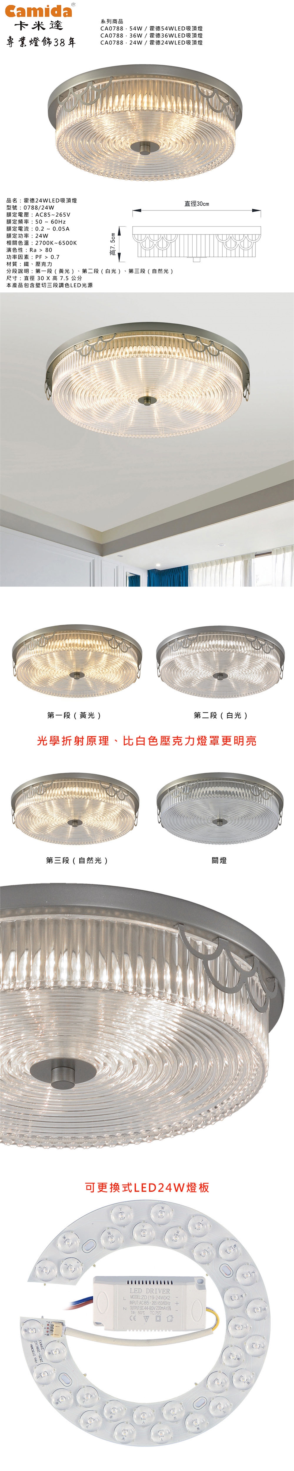 本產品包含壁切三段調色LED光源