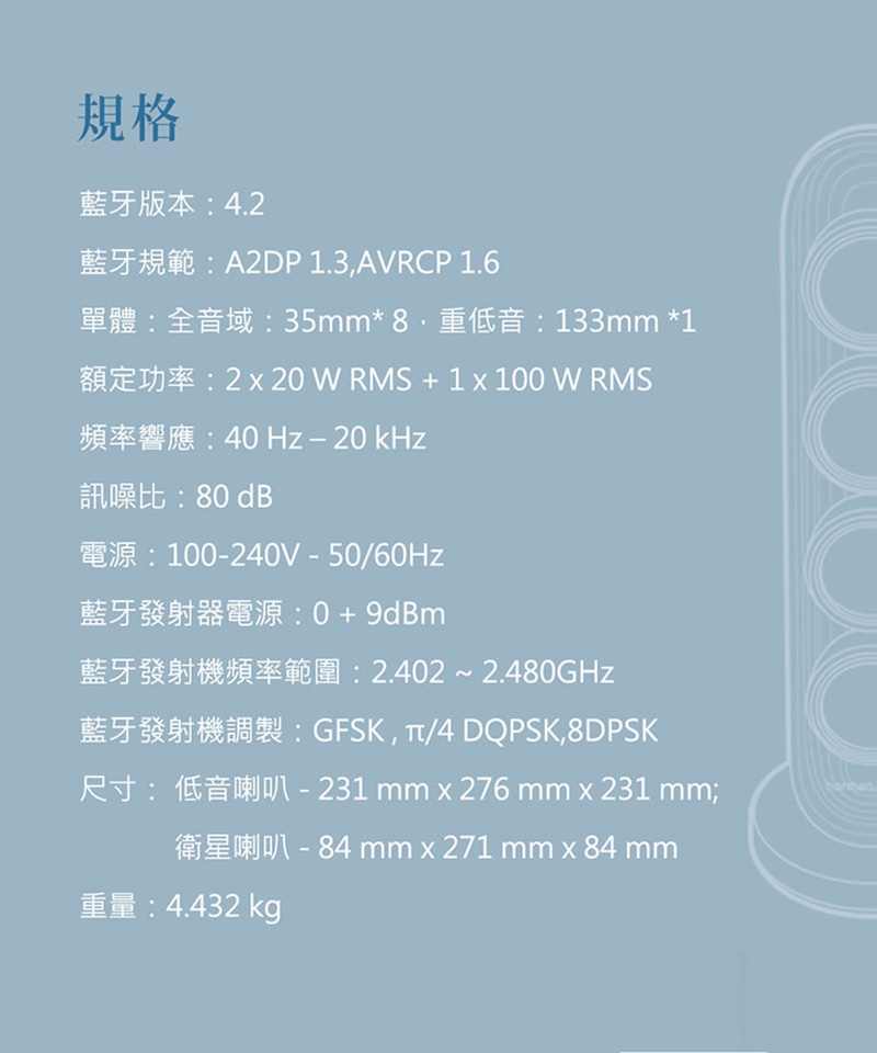 .驅動單體:35mm*8,重低音:133mm*1