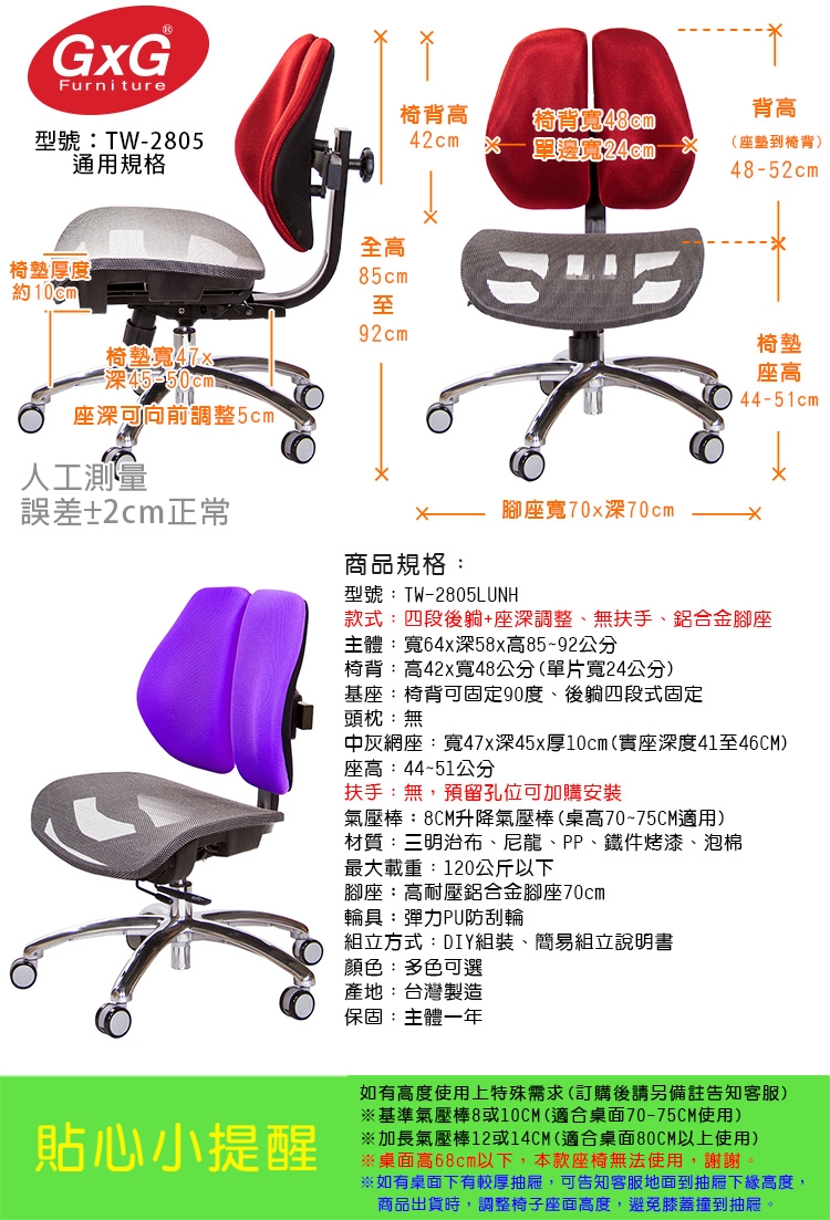 購買注意事項:本座椅高度,均以搭配標準桌高70~75CM使用。