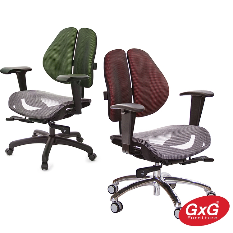 一般的電腦椅,實際上『椅背』大都不能支撐人體腰椎,緣自於人體本身的構造,人體的肩胛骨兩旁延伸至肩膀,其雙肩的壓力,會集中到腰椎中心處形成一個『倒三角的點』,如同一個箭頭向下將壓力壓迫到腰椎,無法讓脊椎肌肉正常釋放重力。 GXG Furniture開發出新式『智慧雙背椅』,提倡健康座、舒適生活,當您坐在一般椅子上,腰椎基本所承受的壓力,是人體自然站立時的140%,而使用『雙背智慧椅』,如同多了一雙手,完整托住您的背部,明顯比一般椅子減輕百分之五十的腰椎壓力,讓腰椎壓力降至75%,改善您長久以來的困擾怎麼坐,都痠痛的問題,能讓您舒適度明顯提升
