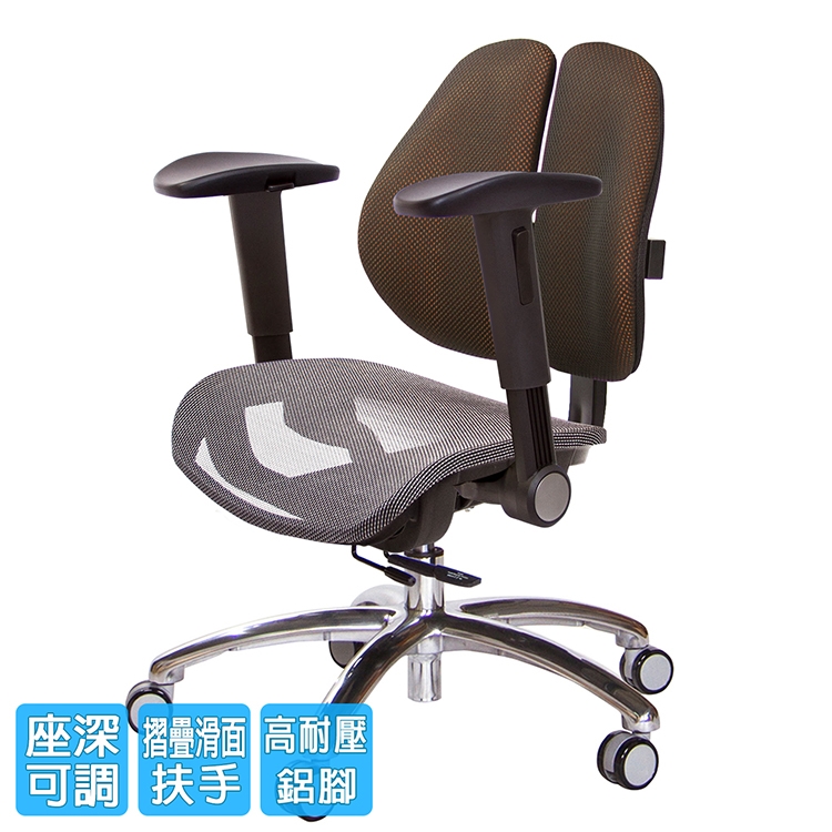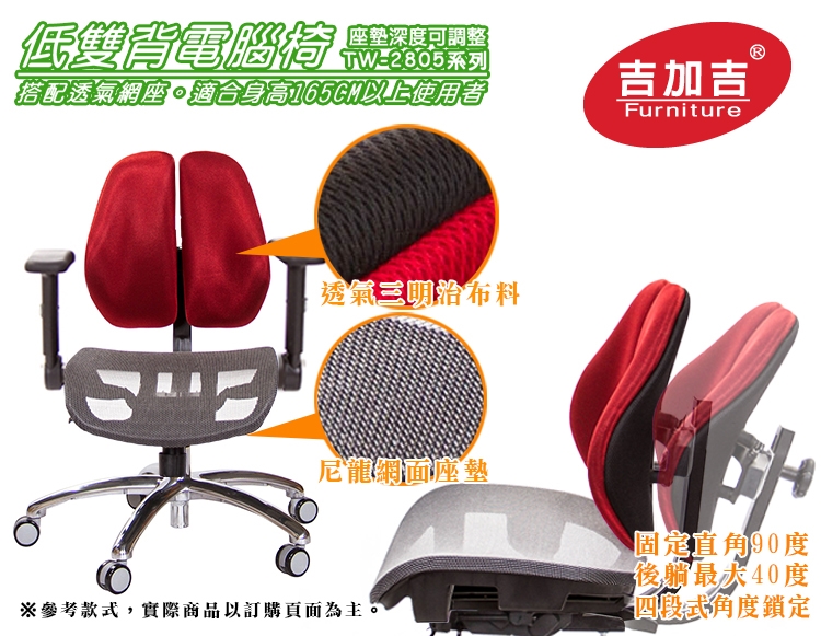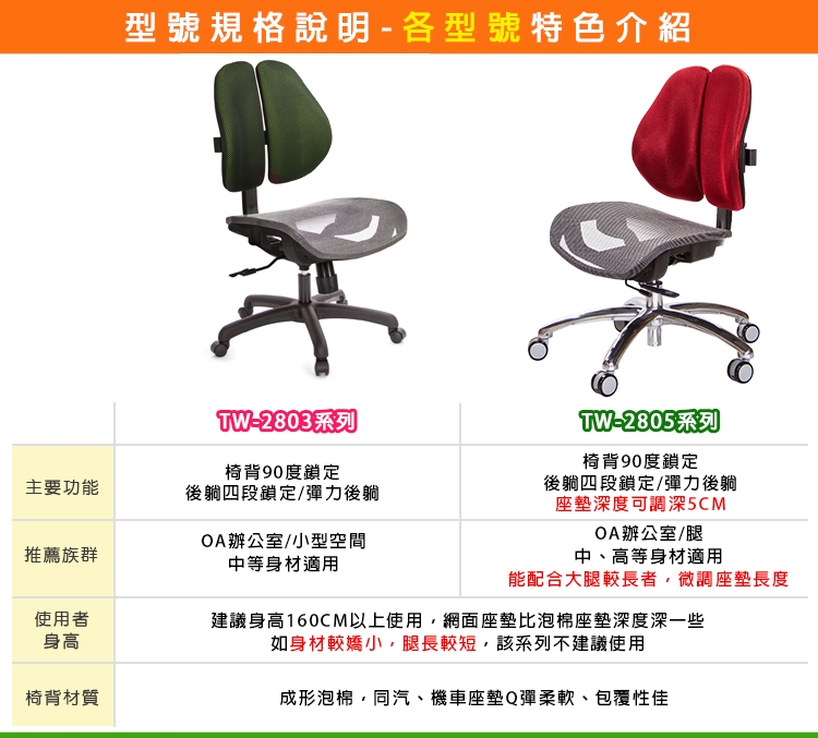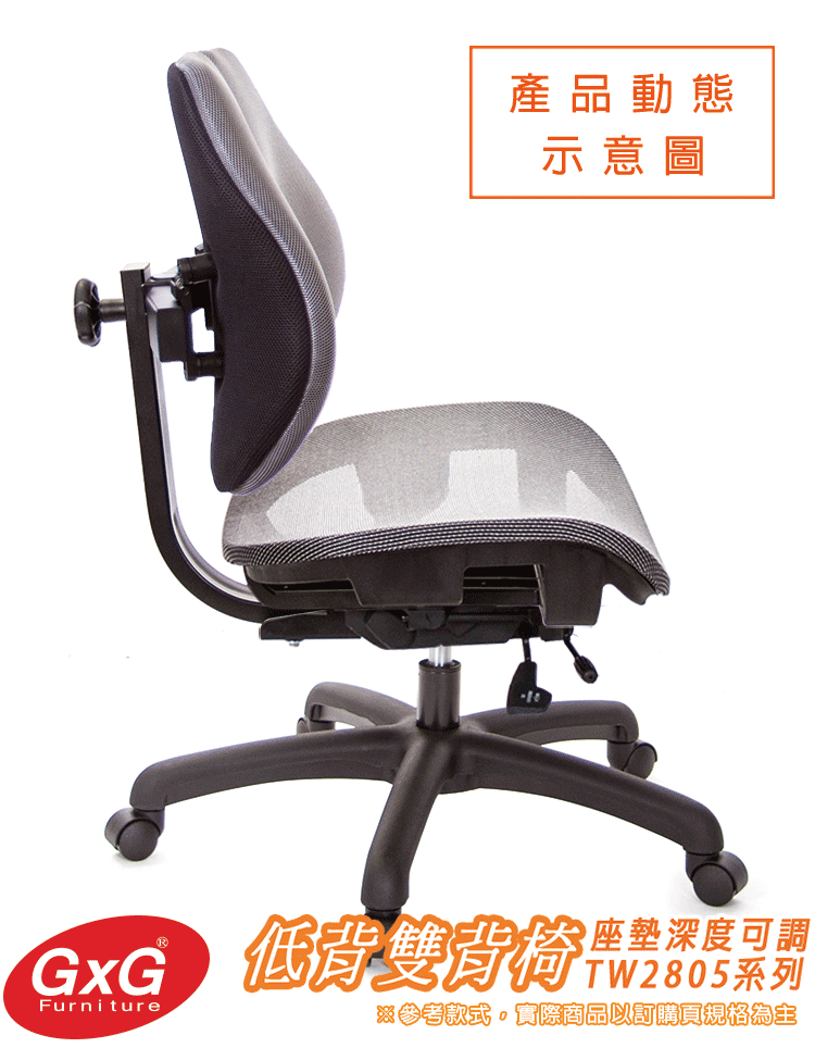 TW-2805低背款雙背椅,本款使用中型灰網面座墊,適合身高160~185CM使用者,椅背採用人體工學設計,造型看似烏魚子、或是像兩個人體肺的型狀,這樣的設計,是讓我們在乘坐後靠時,能更貼合我們背部,緩和脊椎的重力,降低尾椎壓力,給長時間工作者一張,聰明、會改善坐姿習慣的智慧椅。