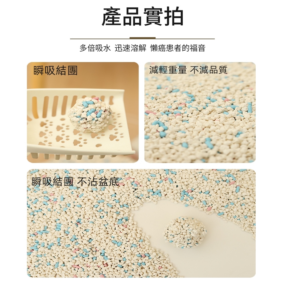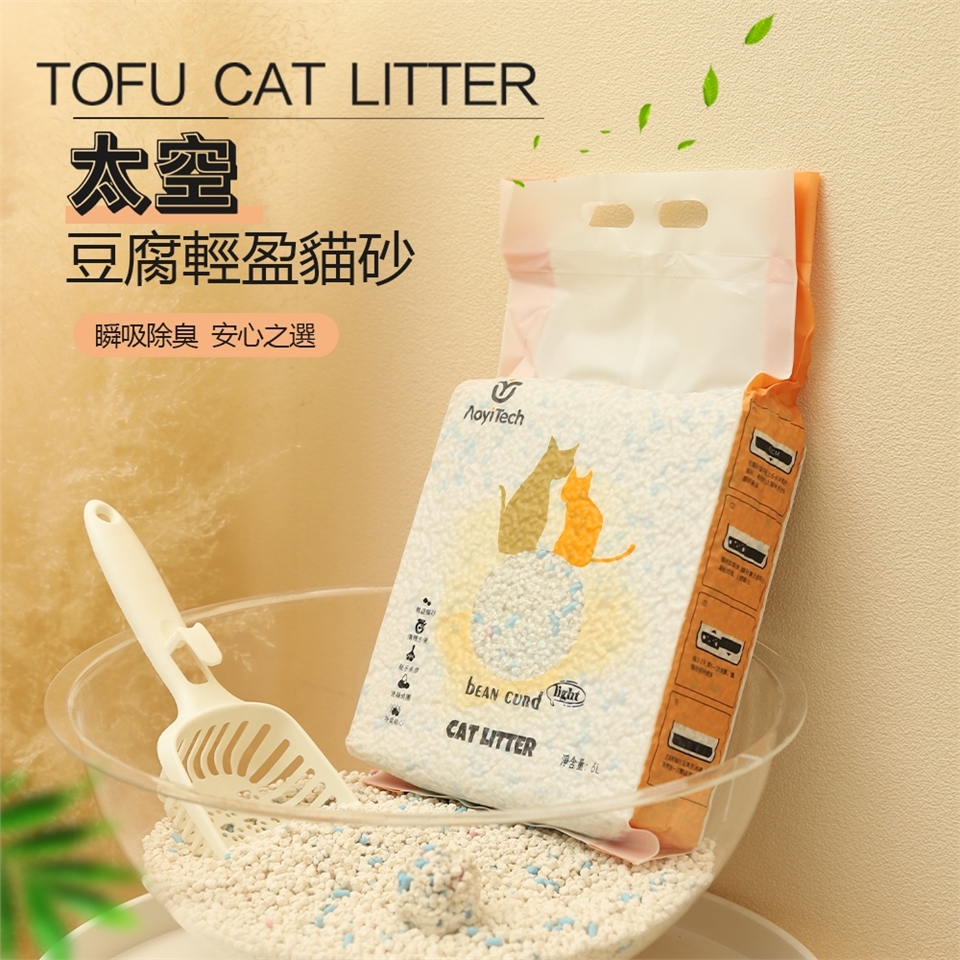 SGS除臭+食品級原料雙認證太空豆腐貓砂,奧藝太空貓砂的除臭率高達95%以上。AOYI無塵豆腐貓砂,可沖馬桶減少垃圾負擔。不沾貓砂盆底部-直接吸好吸飽。