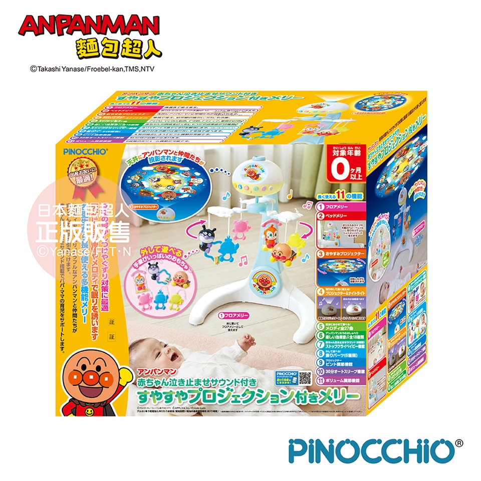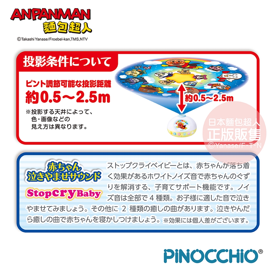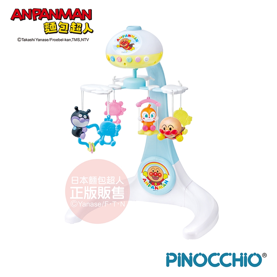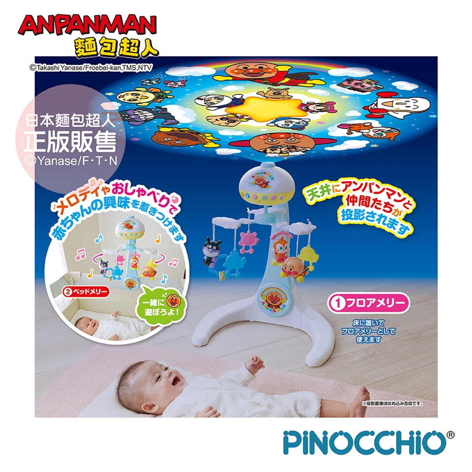 轉動後天花板就會出現可愛的麵包超人與伙伴們的圖案投影喔!誘導寶寶香甜進入夢香,