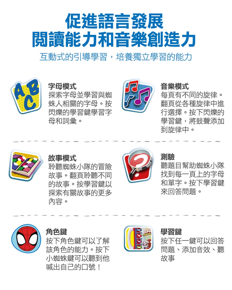 聆聽蜘蛛小隊的冒險故事,學習字母和單字