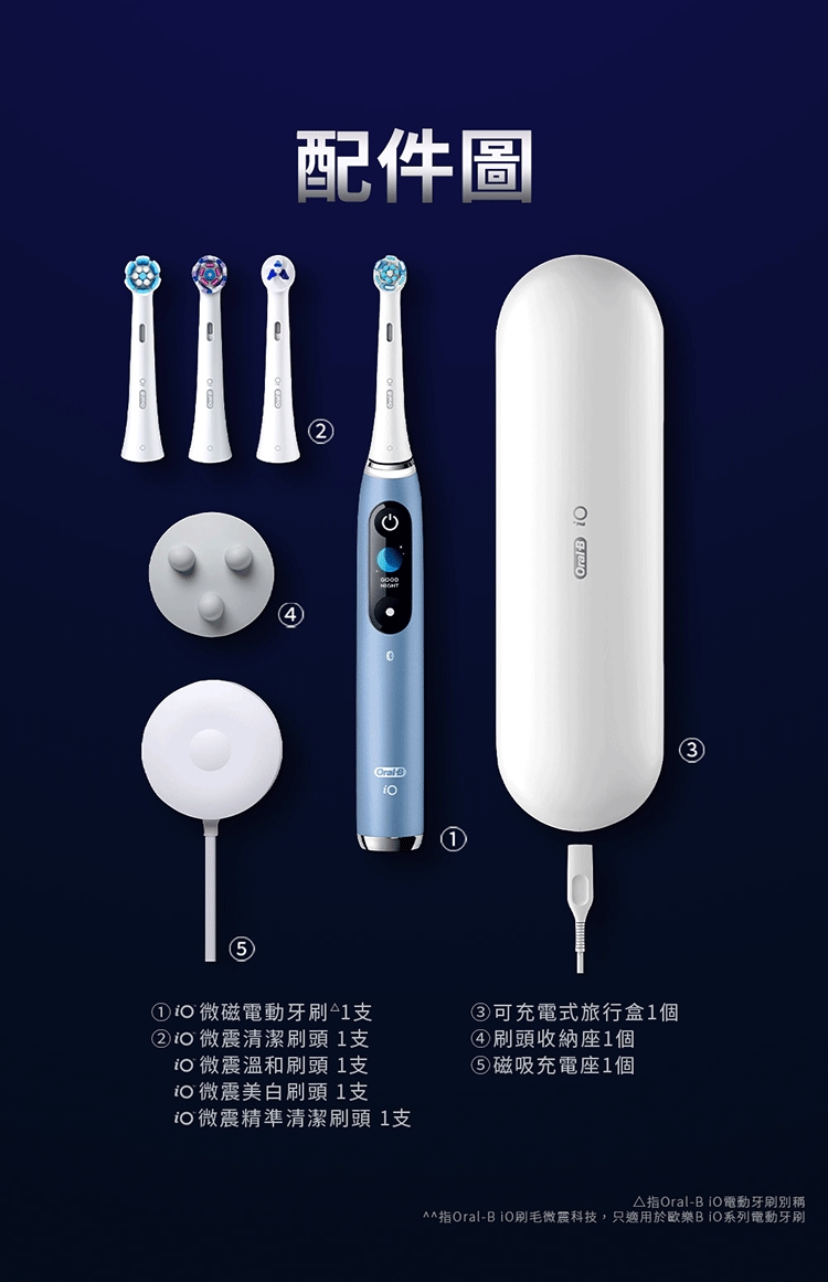 對應刷頭:iO系列刷頭(微震清潔刷頭、微震溫和刷頭、微震美 白刷頭、微震精準刷頭)