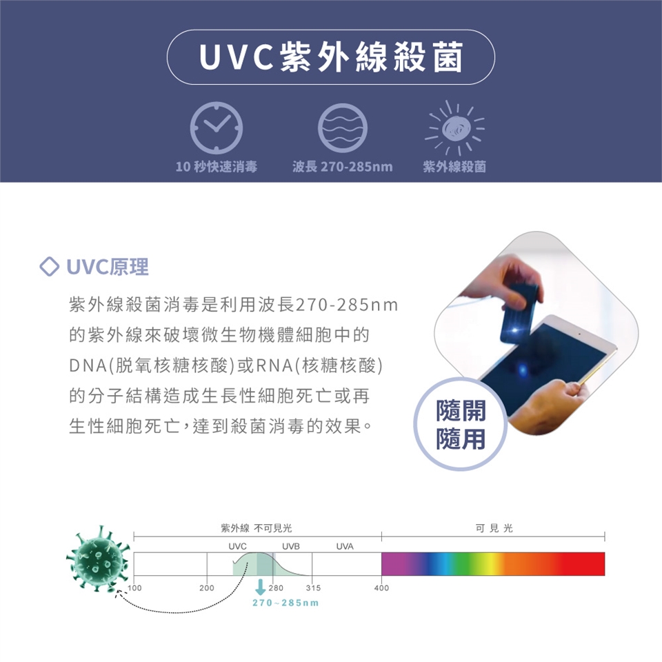 紫外線UVC對人的眼睛和皮膚有害,請勿將眼睛或皮膚直接暴露在UVC光線下。