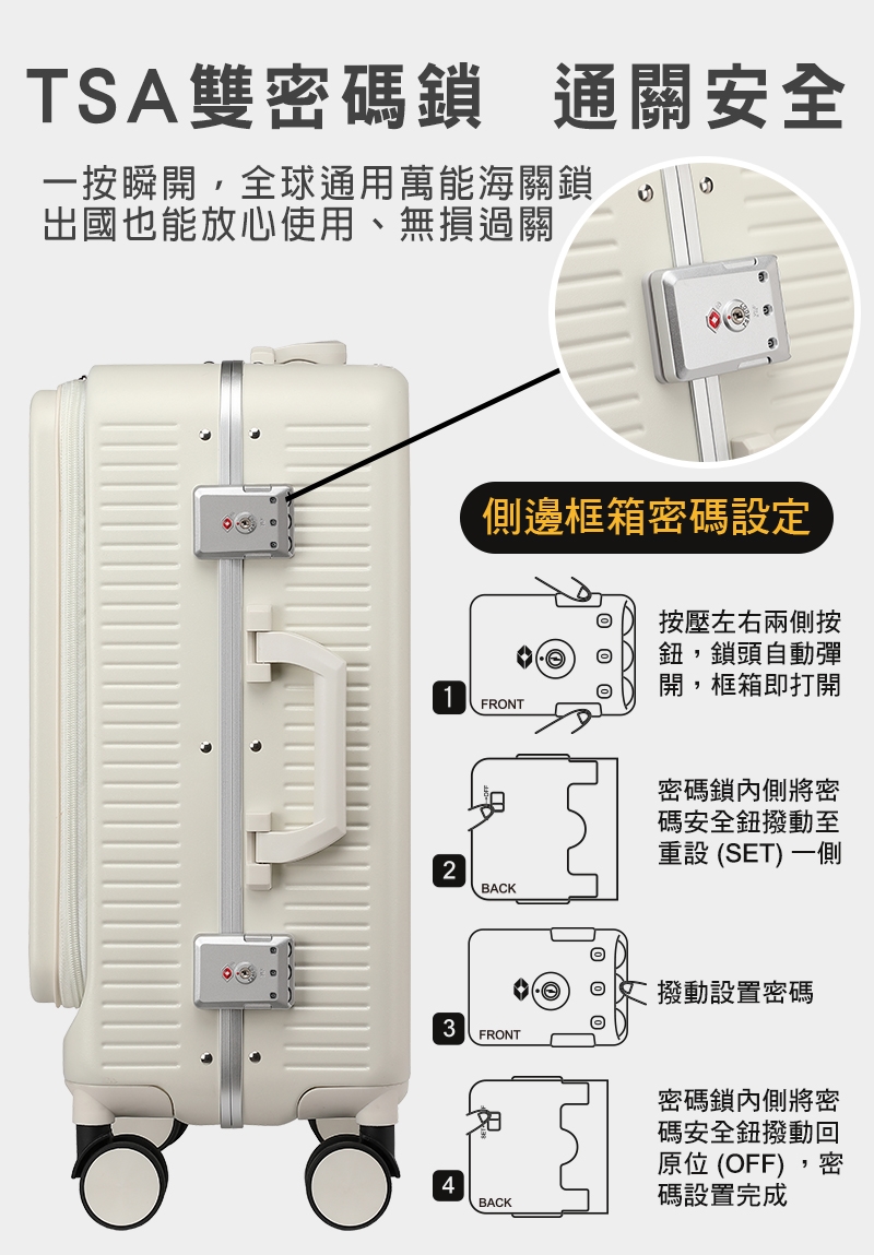 ● 專屬國際TSA海關三碼密碼鎖,保護更加分