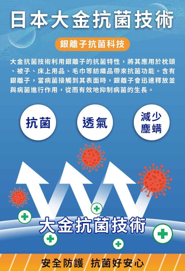 填充物:100%聚酯纖維(含銀離子、大金抗菌纖維)