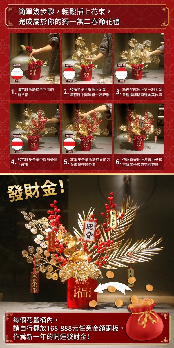 6、依照喜好插上迎春小卡和吉祥吊卡即可完成花禮