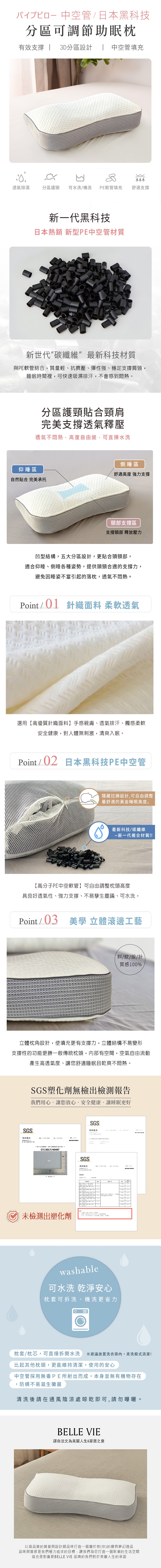 無毒PE中空管填充擁有完美的支撐力,可調整至適合自己的睡眠高度,讓後頸部貼合無懸空,感受全