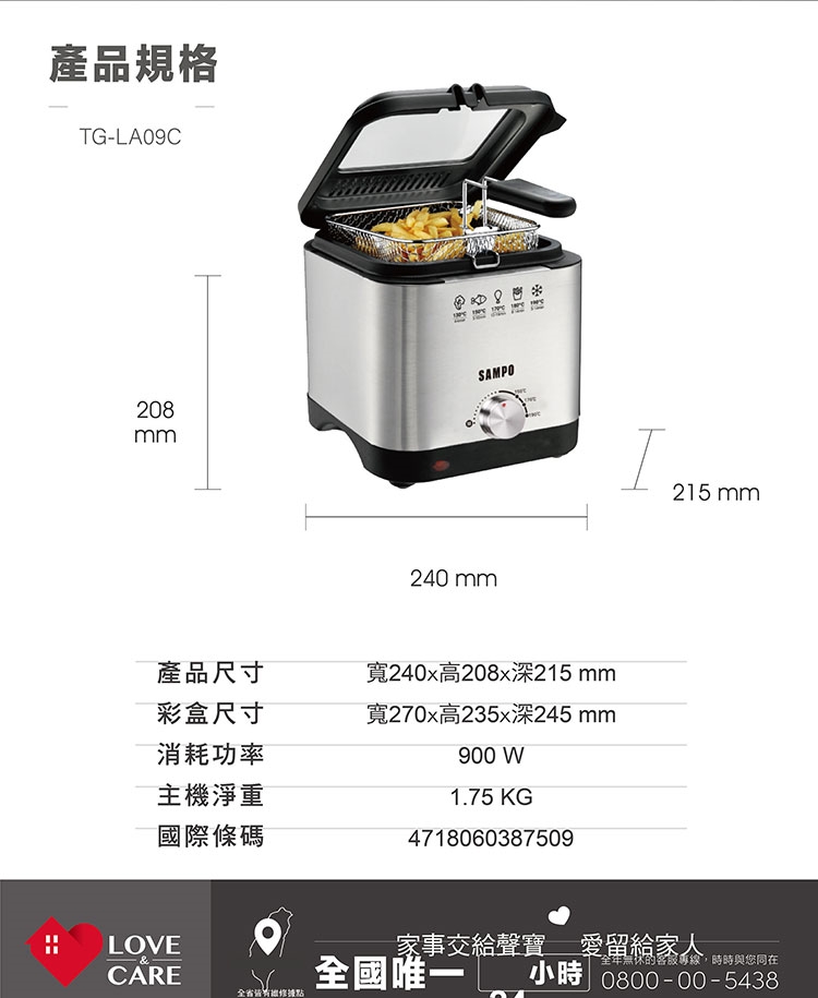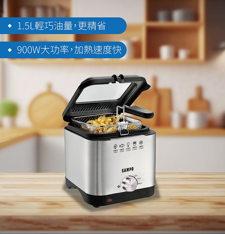 ◆ 1.5L輕巧油量,更精省,900W大功率,加熱速度快