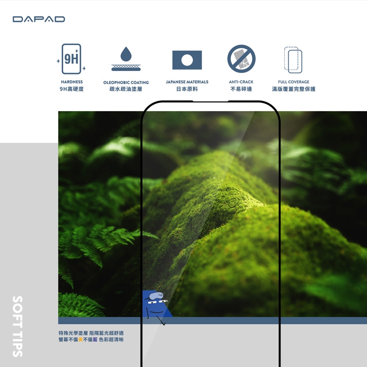 保護貼安裝前請先放至於螢幕上比對無誤後再行黏貼安裝