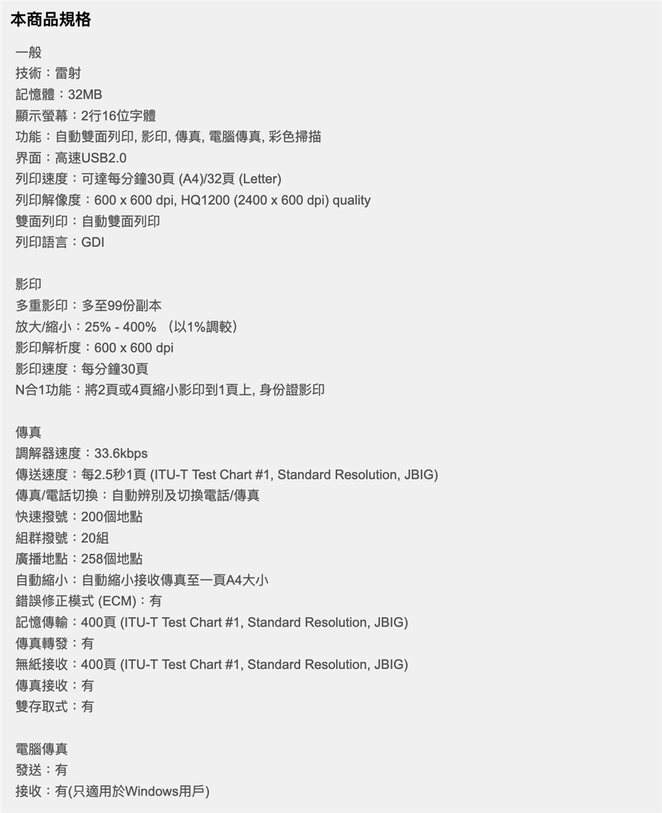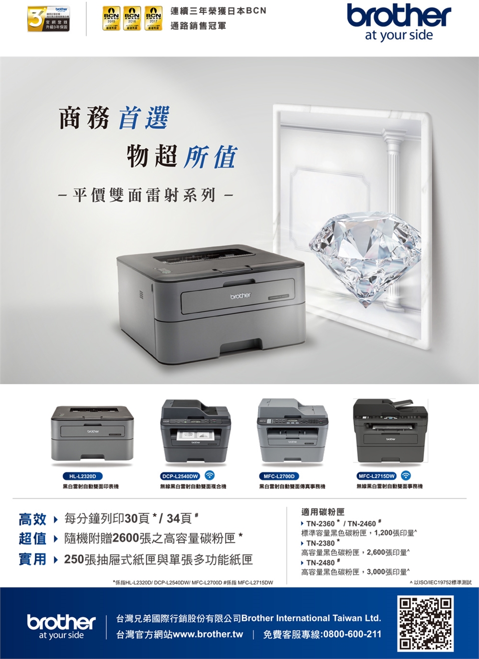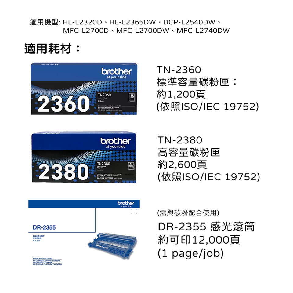 產品規格依Brother台灣官方網站公佈為主,若有更改恕不另行通知。