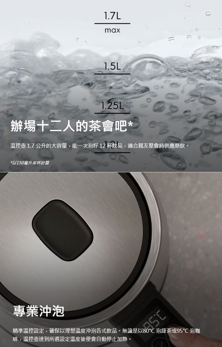 ◆ 1.7 公升大容量,可沖製 12 杯飲品。