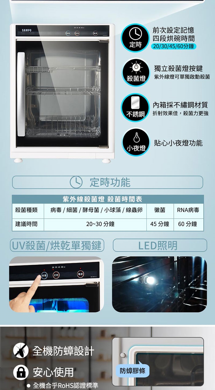 ★ 紫外線安全裝置: 開門自動切換照明設計