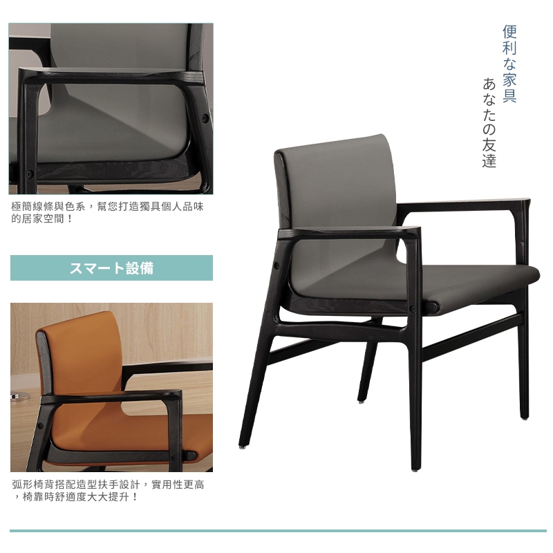 弧形椅背搭配造型扶手設計,符合人體工學,讓倚靠時的舒適度大大提升!