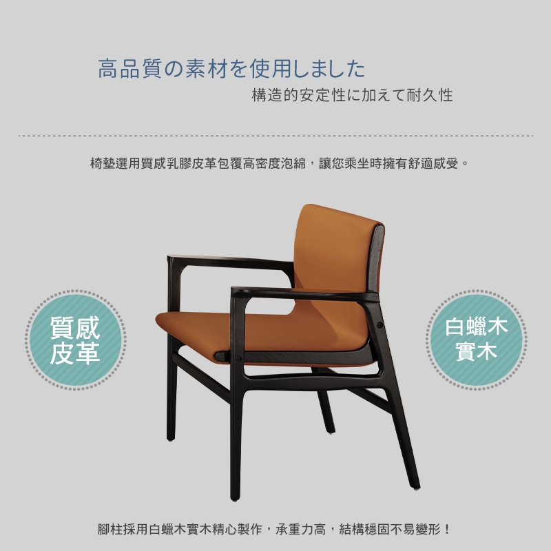 腳柱採用白蠟木實木椅腳,承重力高,結構穩固不易變形!