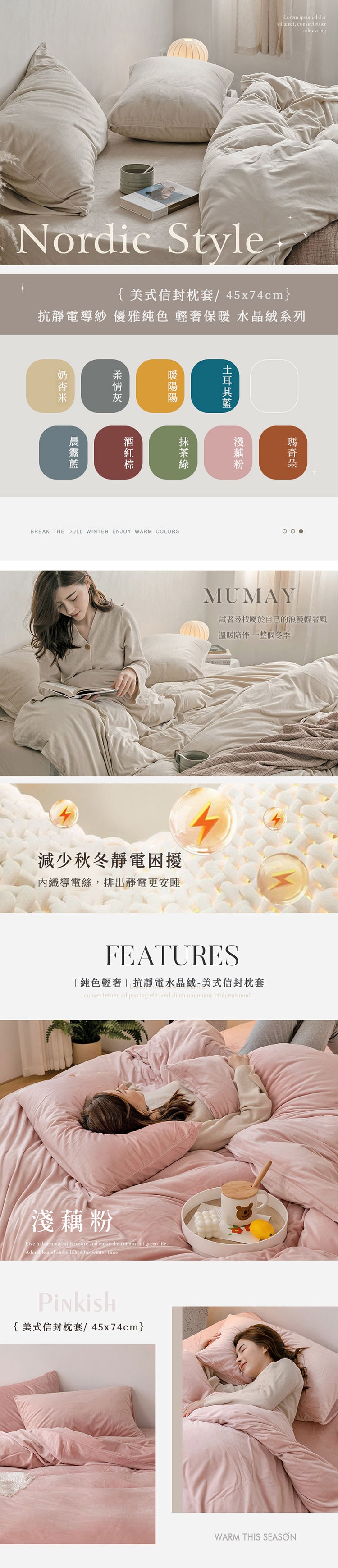 BELLE VIE 輕奢保暖 抗靜電水晶絨 美式信封枕套【45x74cm】2入組 多款任選
