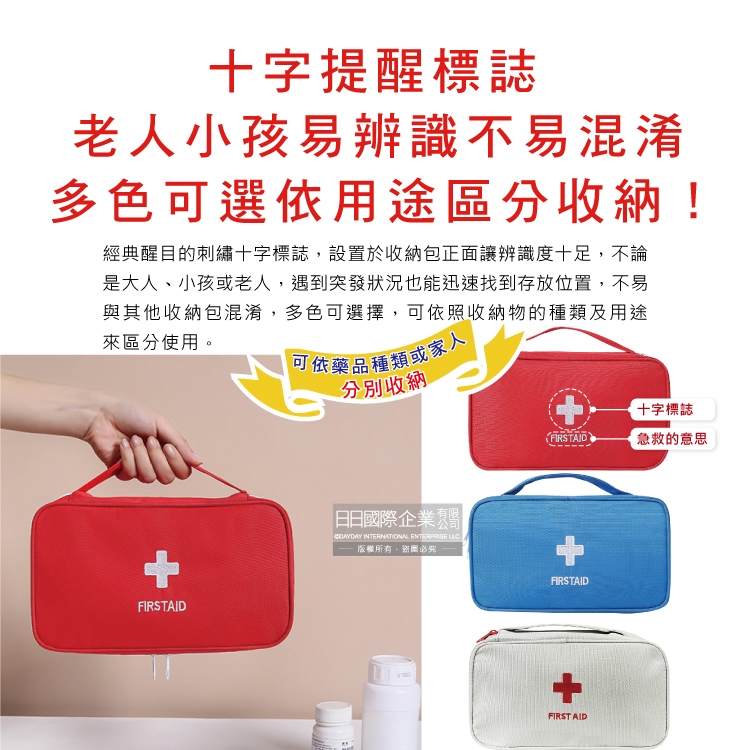 ●品名:家庭護理手提式雙拉鍊醫藥保健品大容量分類收納包