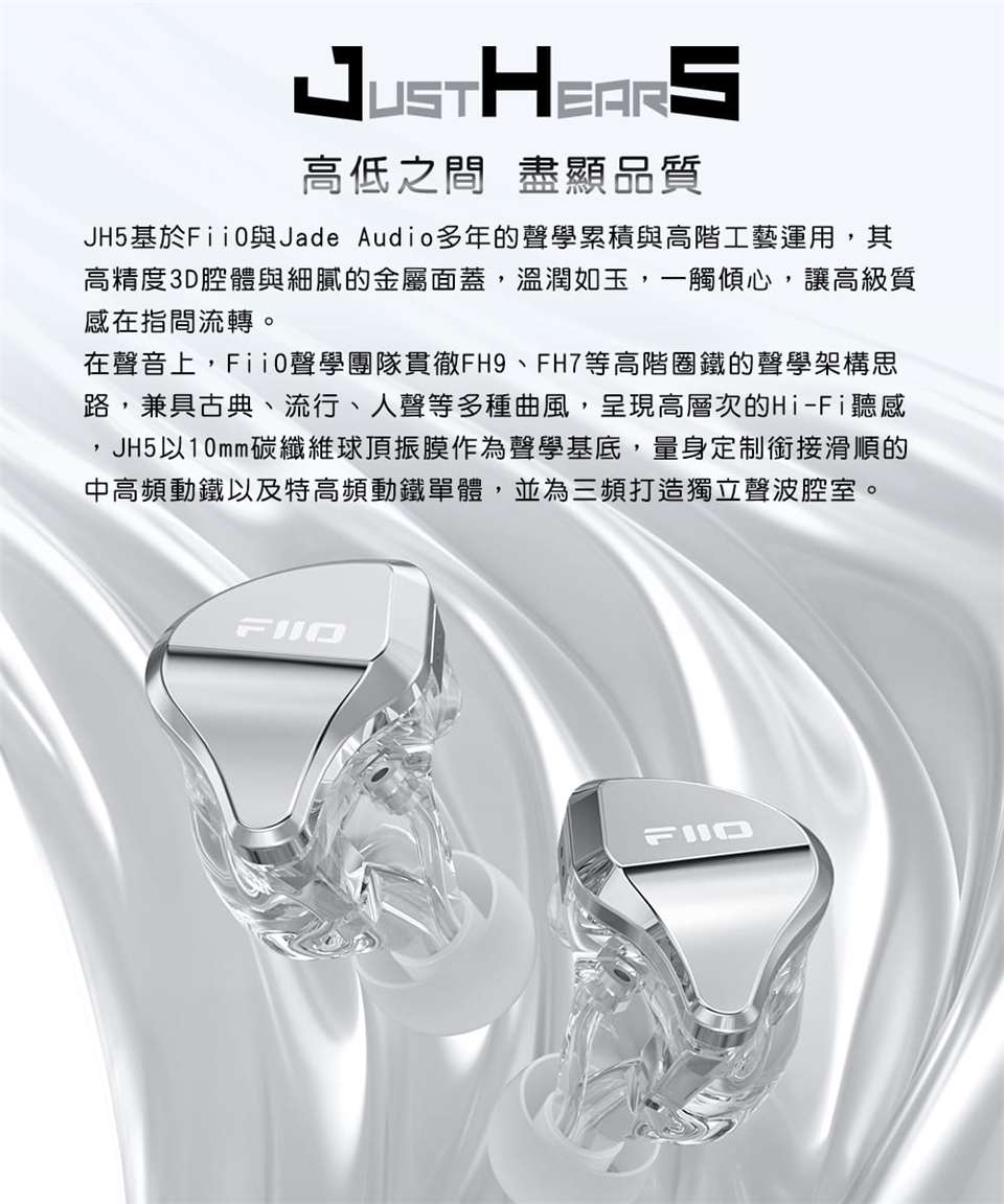 【FiiO X Jade Audio JH5 一圈四鐵五單元CIEM可換線耳機】