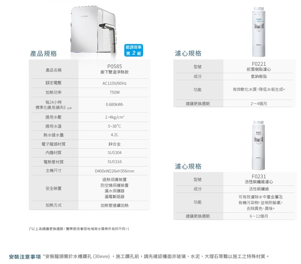 ※淨水產品一經拆封或安裝過水(因衛生關係)則無法再販售,恕無法辦理退換貨, 溫馨提醒您訂購前請先確認評估。