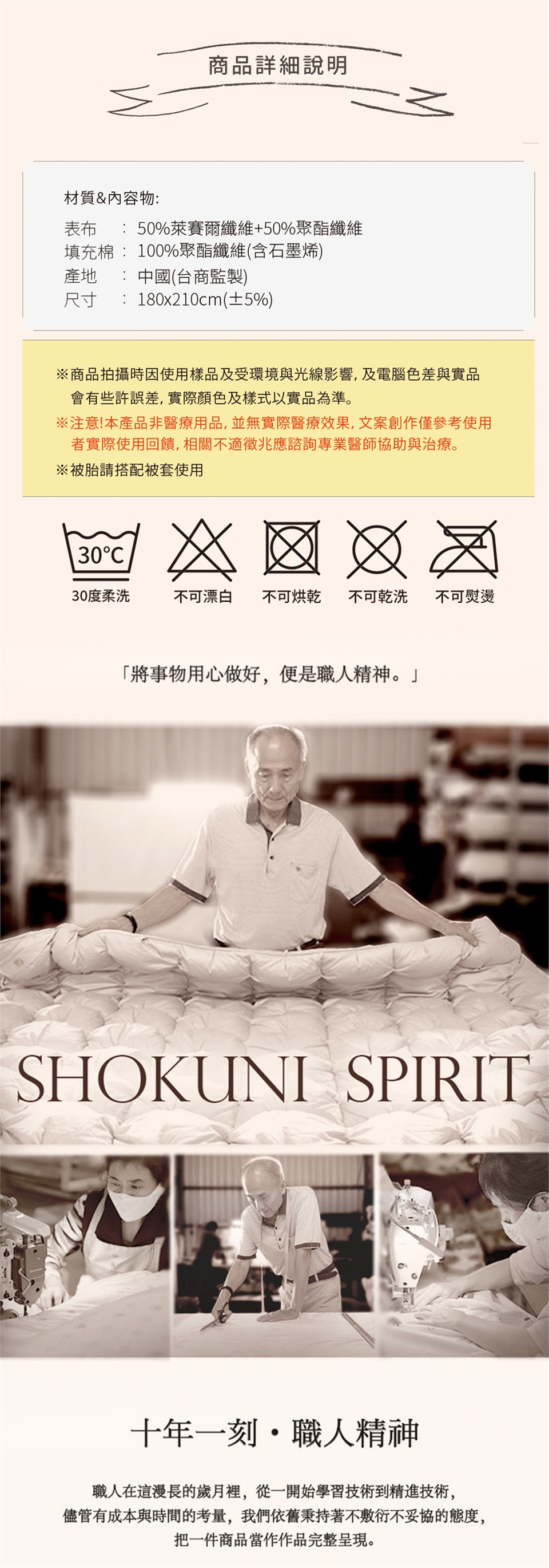 尺寸 : 180x210cm±5%(6x7尺)