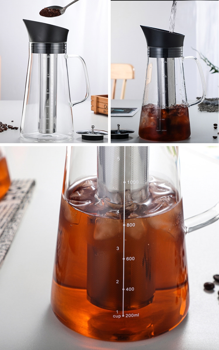 商品文案:這個夏天,美好的心情,就從享受冷萃咖啡和冷泡茶開始吧!不管是要泡冷萃咖啡、裝果汁、酸梅汁、花草茶、冷泡茶等飲品,耐熱玻璃冷泡茶/冷萃咖啡壺都可以幫您完成!這款咖啡壺,外觀上簡約有型,且冷熱兩用,寄可以冷泡咖啡,也可以泡熱茶!或是擺在家裡當作冷水壺,也非常地具有北歐風格!讓您的生活中多點小儀式的設計!