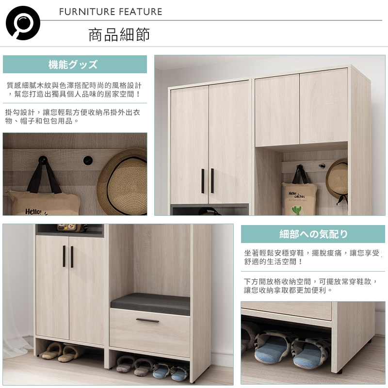 搭配掛勾設計,讓您可輕鬆收納帽子、包包與外出衣物等,方便又實用!