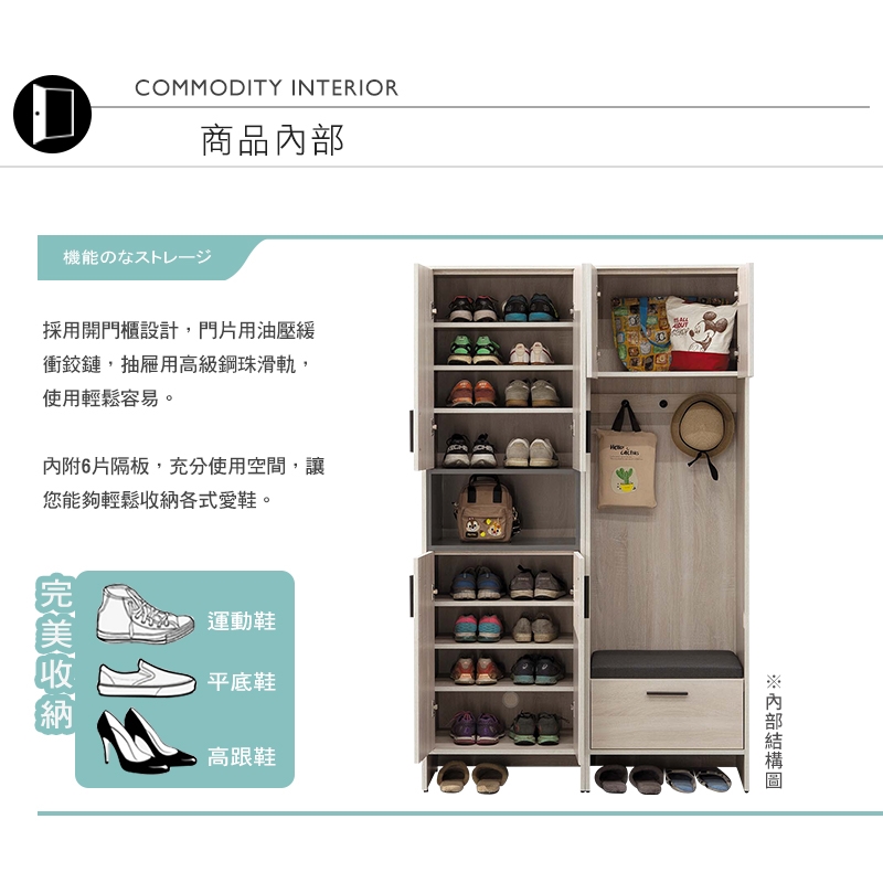 下方開放式空間,可擺放常穿鞋款,讓您收納拿取都更加便利!