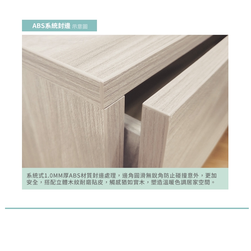 搭配1.0mm系統式ABS厚封邊處理,質感細膩安全不刮手!