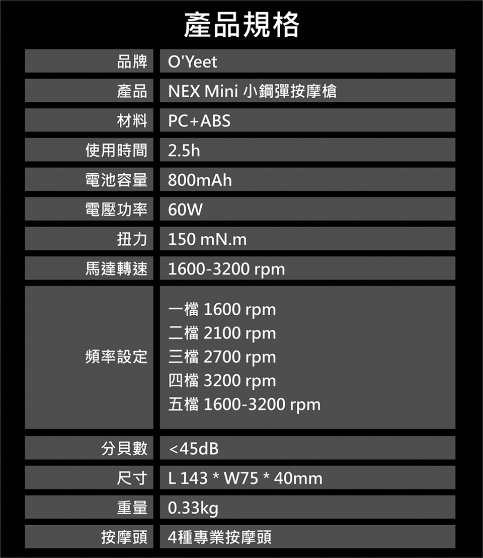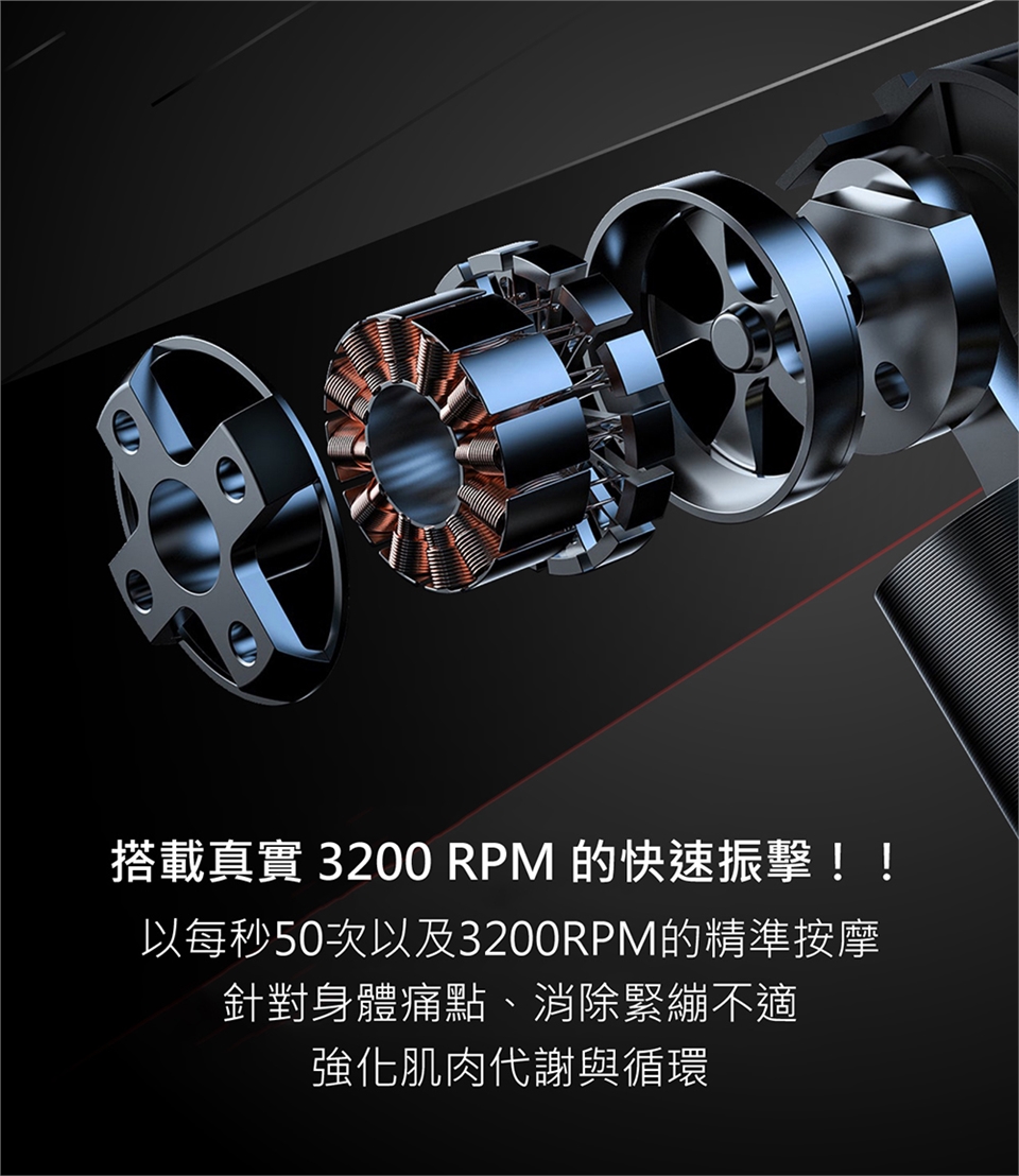 * 每秒50次以3200RPM精準按摩,消除身體緊繃不適