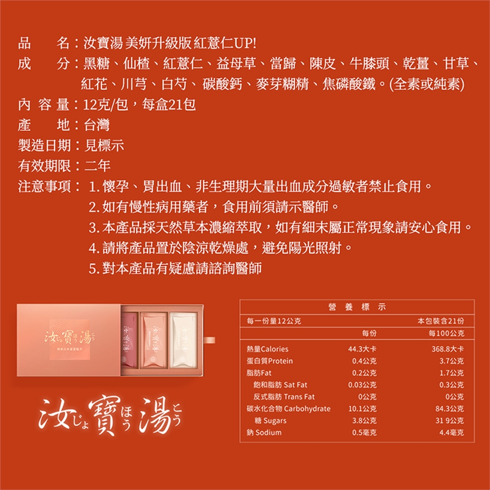 商品品名:【汝寶湯】汝寶湯-美妍升級版(21包/盒)