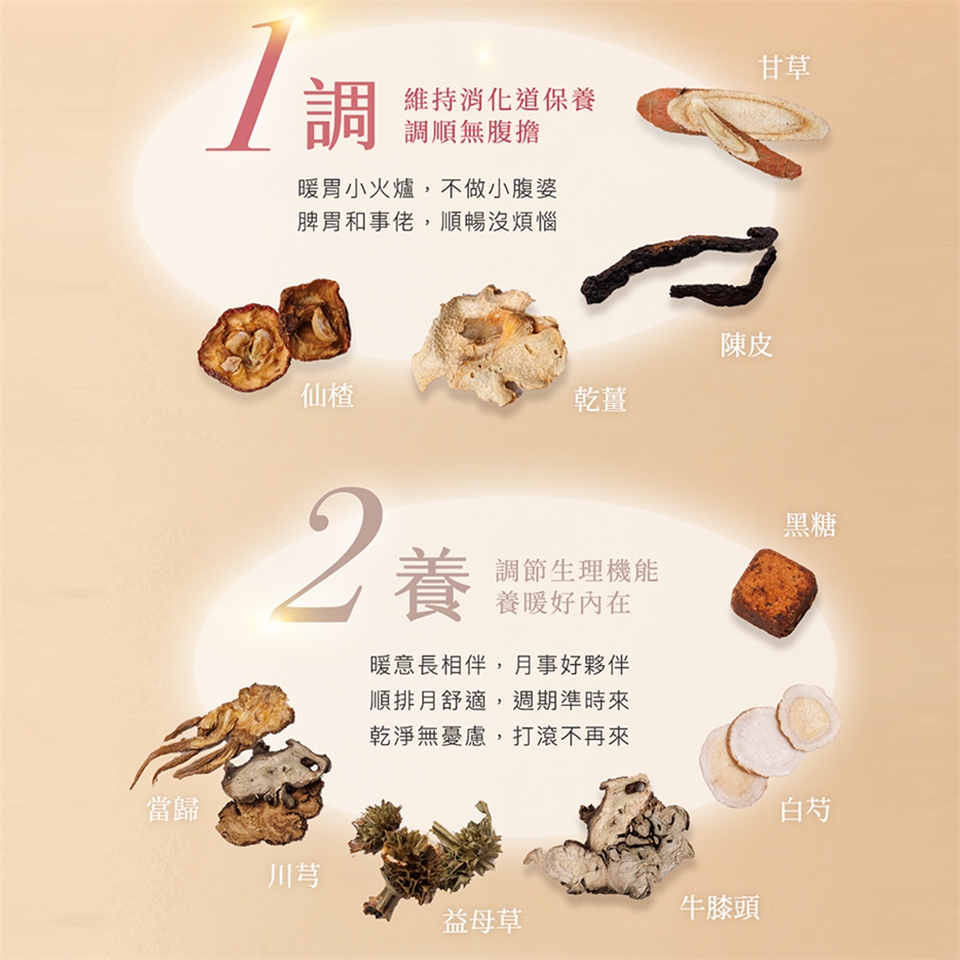 成分:黑糖/ 仙楂/ 紅薏仁/ 益母草/ 當歸/ 陳皮/ 牛膝頭/ 乾薑/ 甘草/ 紅花/ 川芎/ 白芍