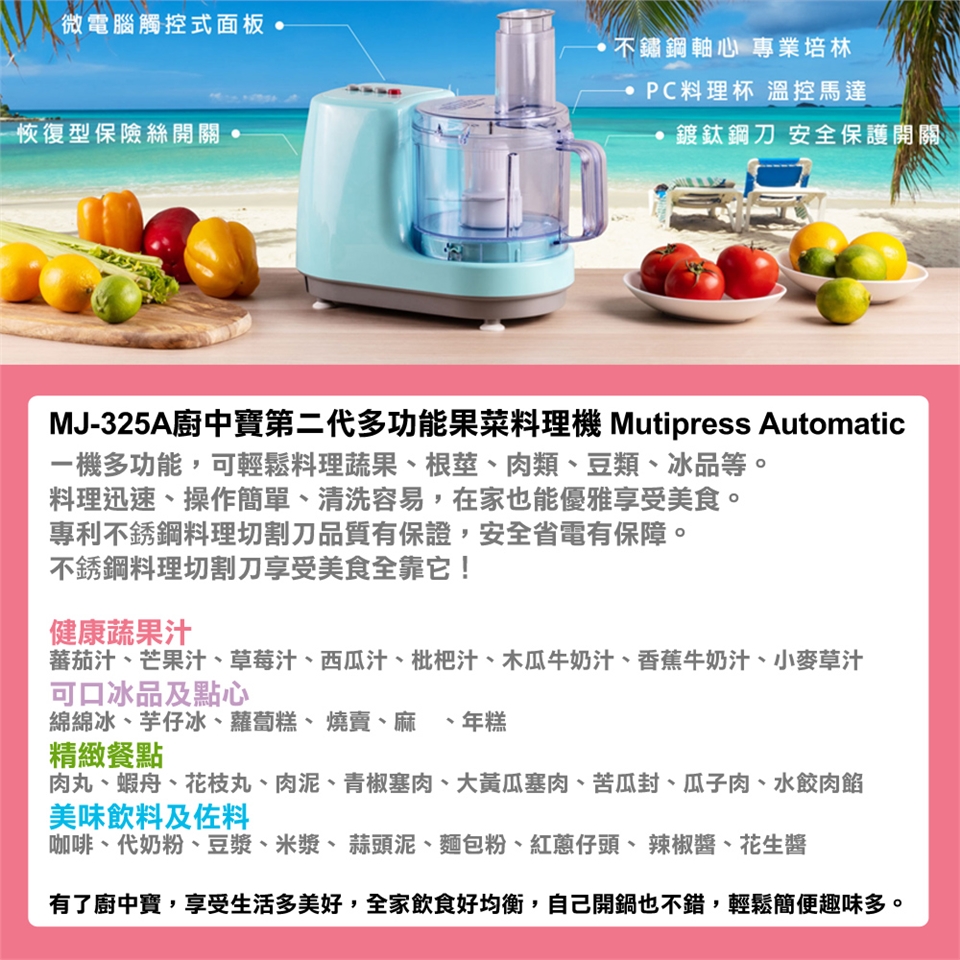 ²一機多功能,可輕鬆料理蔬果、根莖、肉類、豆類、冰品等。