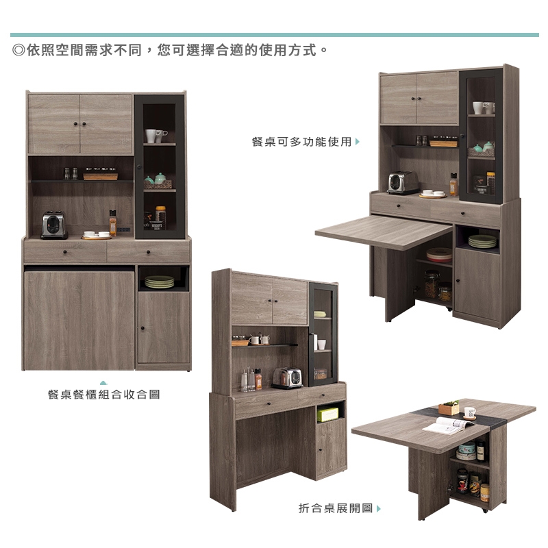 折合桌前後門內附有隱藏式置物空間,更增添收納便利性!
