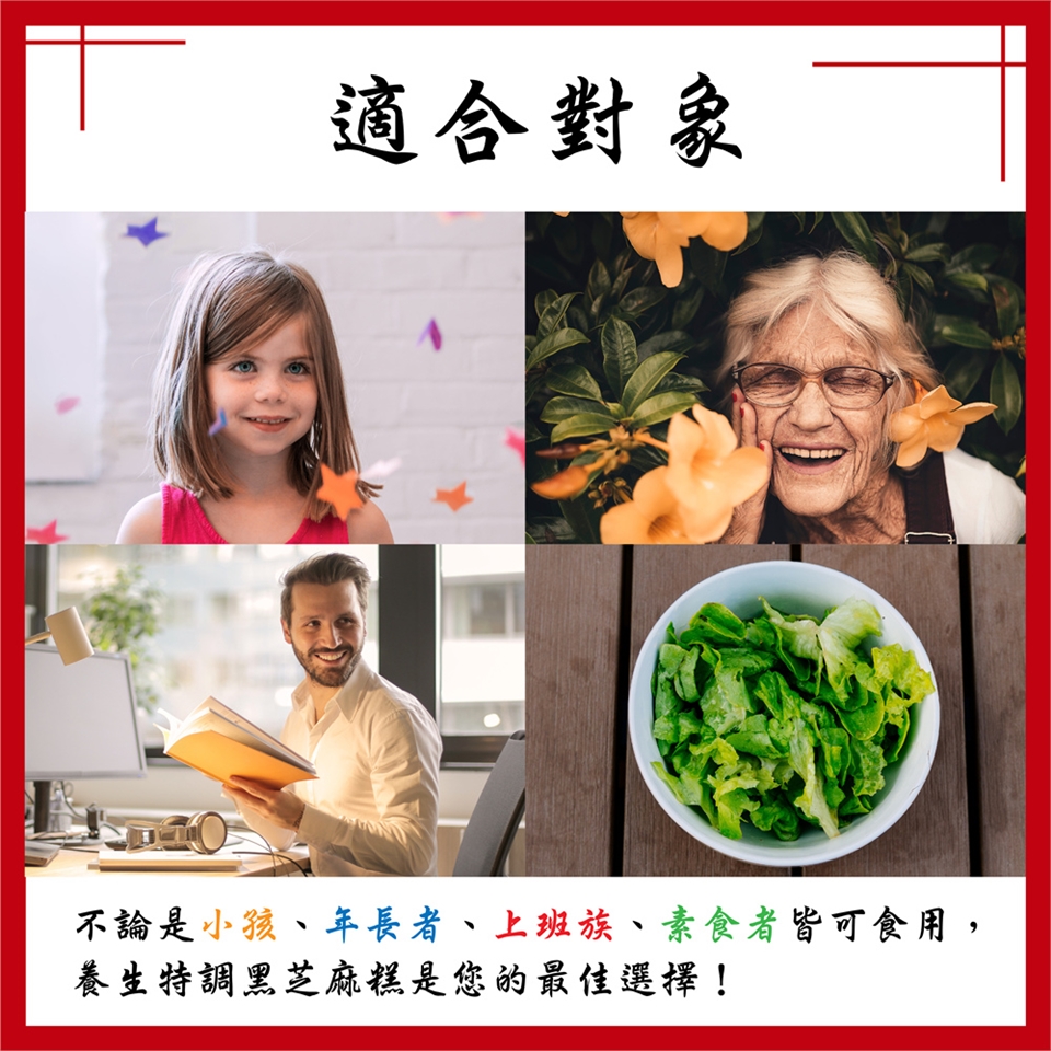 乃精選珍貴的天然高鈣珍品『黑芝麻』及滋補養身、養顏美容聖品黑豆搭配省產白山藥及葛根、黑棗等多種天然營養補給成分,運用獨家技術將芝麻破殼研磨精製,,搭配傳統熬煮方式,不但使芝麻營養素完全釋放,口感風味俱佳,兩片量等於一杯牛奶的鈣含量,為老少咸宜的休閒聖品,更適合發育中青少年、更年期婦女、中老年人所選擇之營養補充零嘴,可促進新陳代謝,幫助牙齒骨骼正常發育,是您維持骨骼健康的好伙伴。