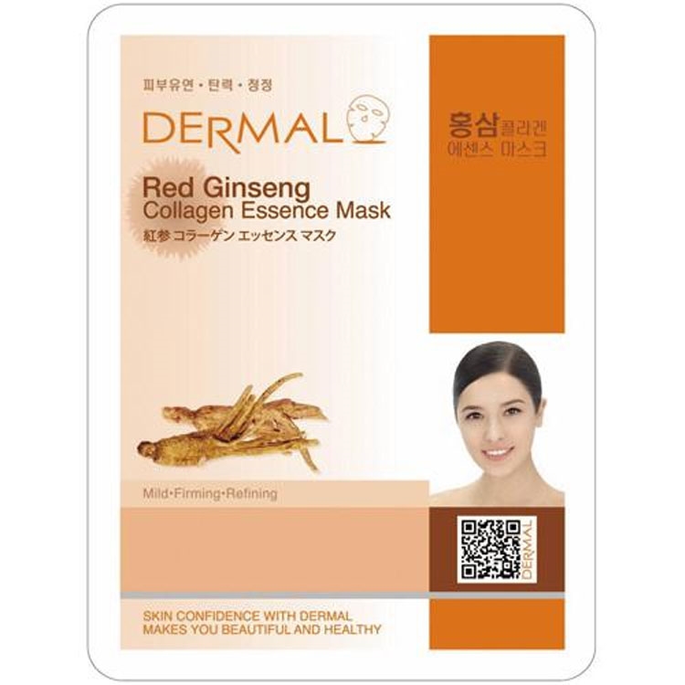 ◆ Dermal紅蔘膠原蛋白精華面膜:內含蘆薈精華與紅蔘萃取精華液,新加上膠原蛋白精華,大大提升舒緩保濕效果