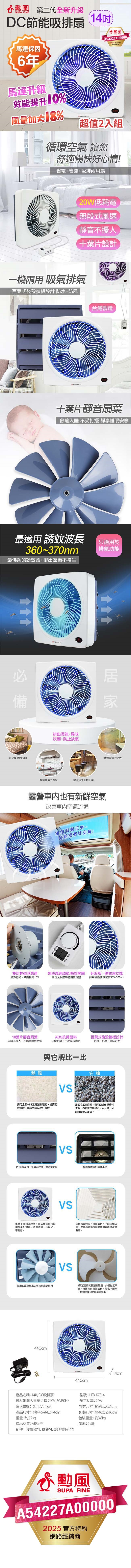 勳風 第二代誘蚊燈14吋變頻DC節能吸排扇 HFB-K7314 台灣製 超值二入組