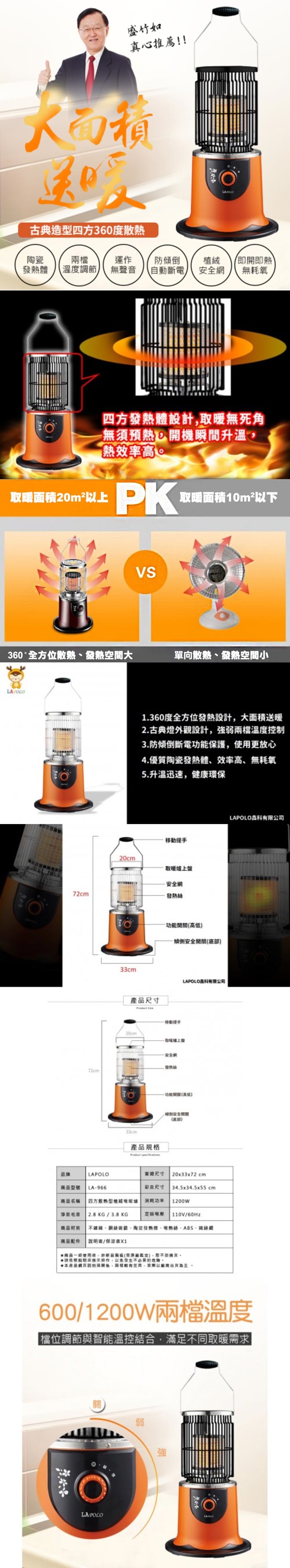 LAPOLO-四方散熱型植絨款電暖爐 (LA-966)