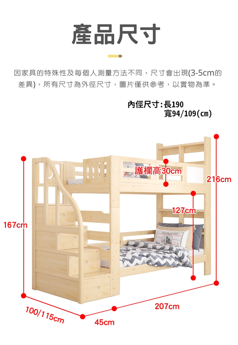 - 上鋪寬度選擇:100/115公分,讓孩子擁有充裕的睡眠空間。