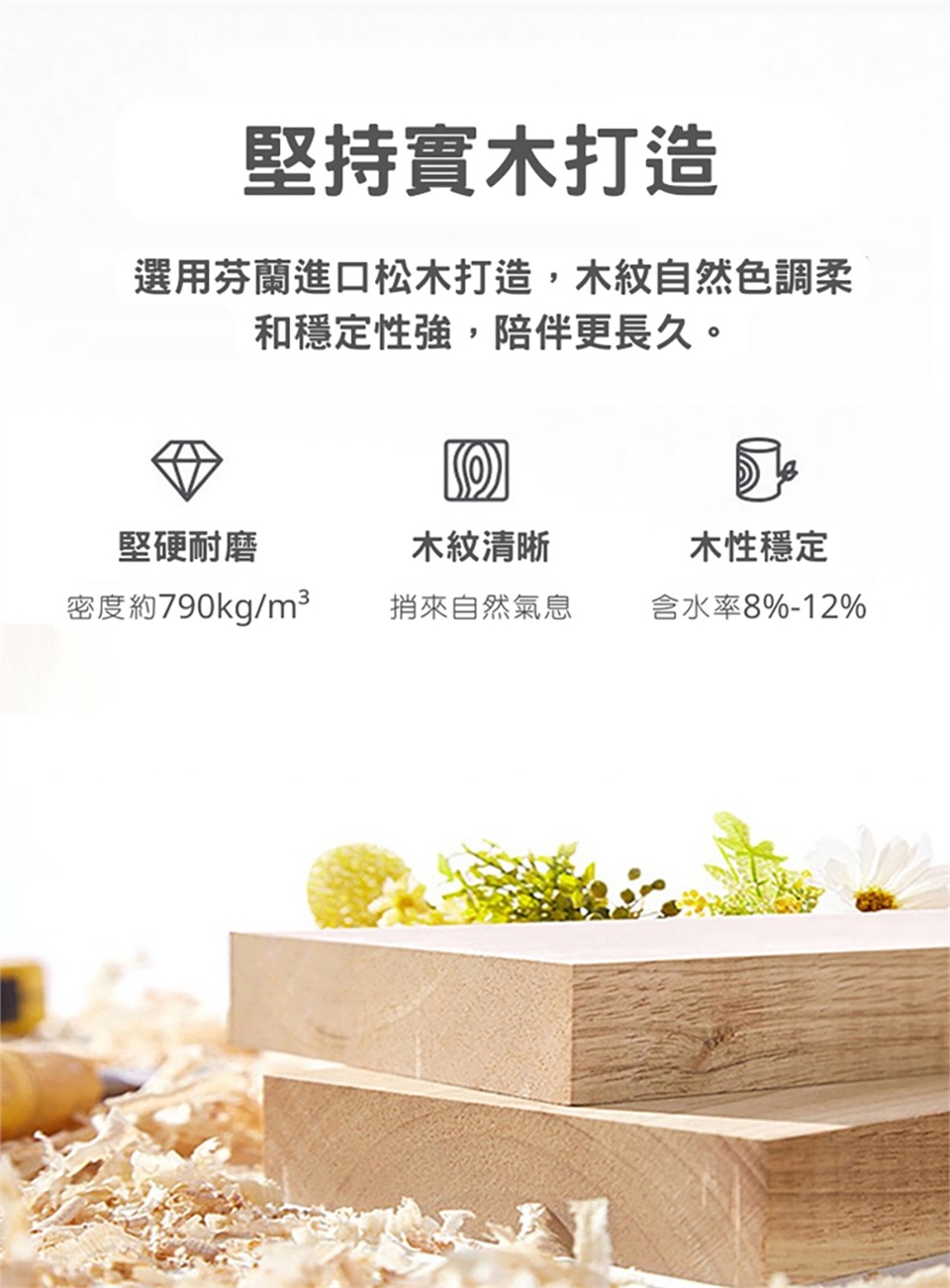 - 產地背書:選用芬蘭與瑞典的優質松木,帶來北歐的設計感與品質保證。