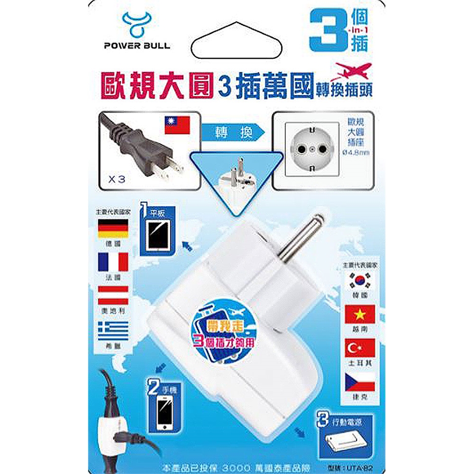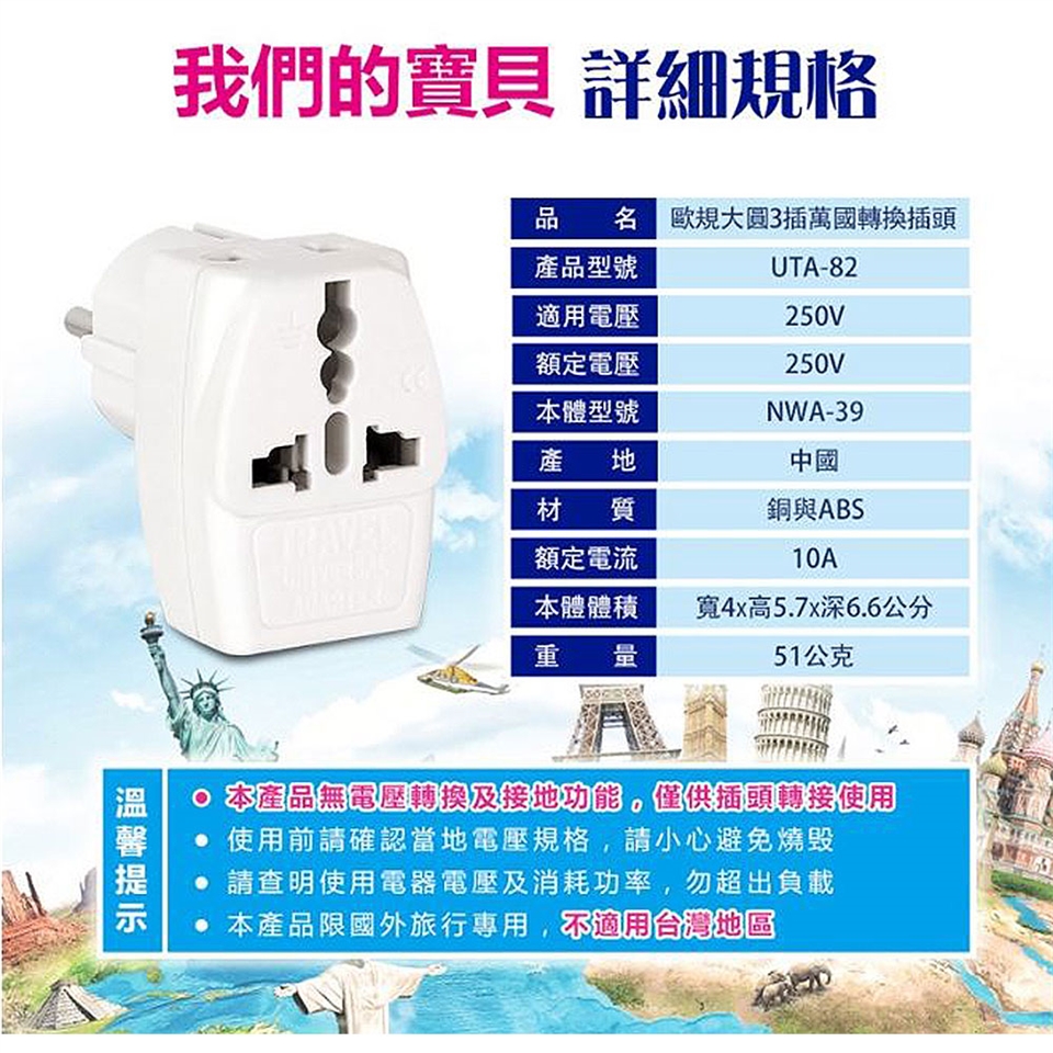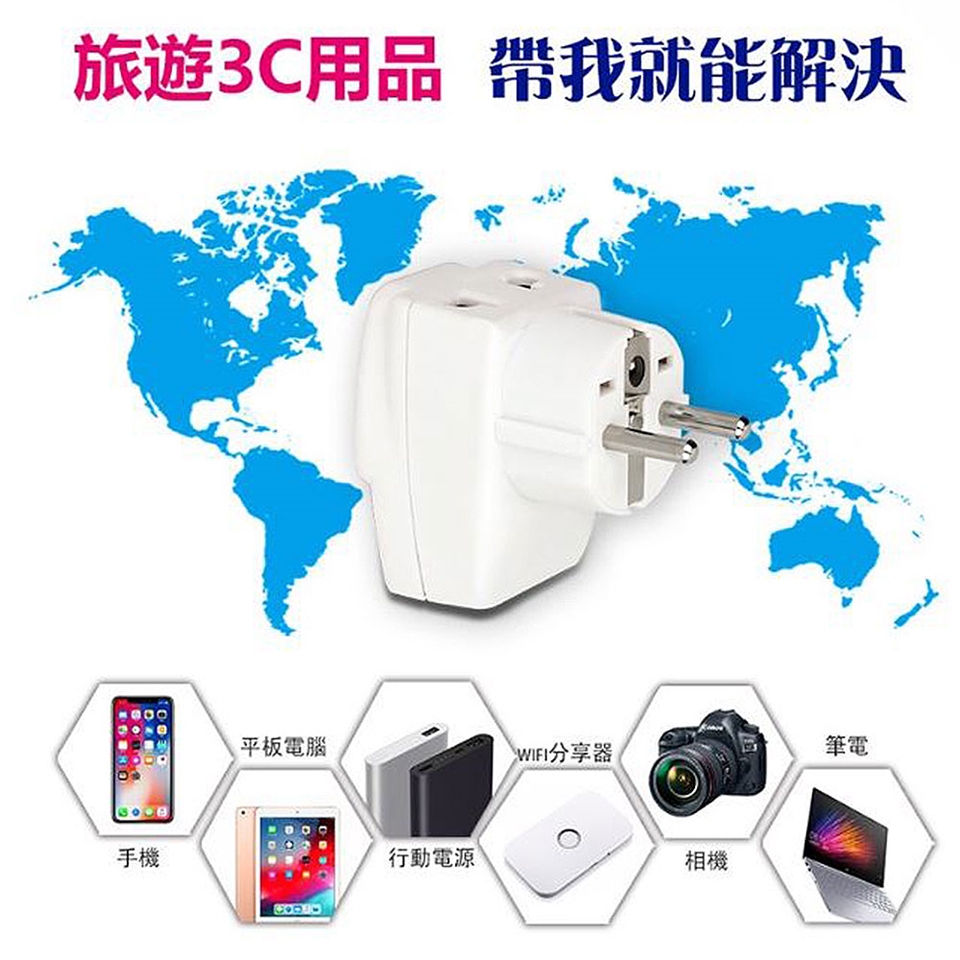 品名:萬國3插座(歐規大圓4.8mm)轉換插頭
