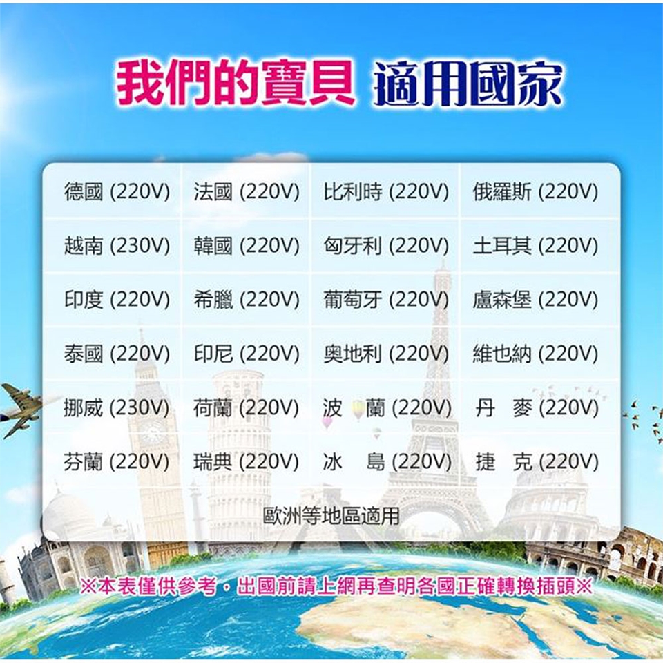 ※ 再查明欲使用電器電壓及消耗瓦數,勿超出負載。